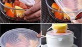 درپوش سیلیکونی پوشش دهنده ظرف غذای بدون درب پوشش دهنده انواع میوه مانند هندوانه ، خربزه ، طالبی کیفیت درجه یک بدون ذره ای چکه از دربهای سیلیکونی در سایزهای مختلف محصول چین در بسته های ۶ عددی ارزانتر از سال قبل یک بسته ۶ عددی